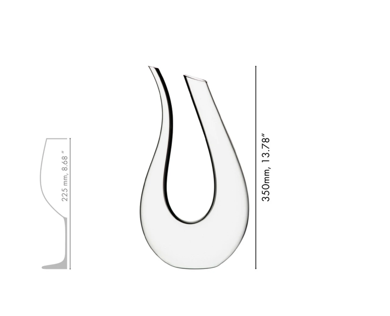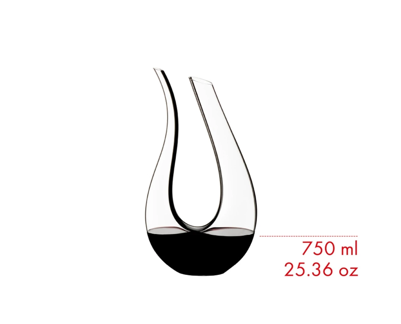 The Amadeo was launched in 2006 to celebrate the 250th anniversary of RIEDEL. Named after fellow Austrian composer Wolfgang Amadeus Mozart, whose 250th birthday was also celebrated that year, this hand-blown decanter is shaped like a lyre and pours like a dream. Wine is simply decanted into the vessel’s wider opening and poured into the glass through its slender mouth.