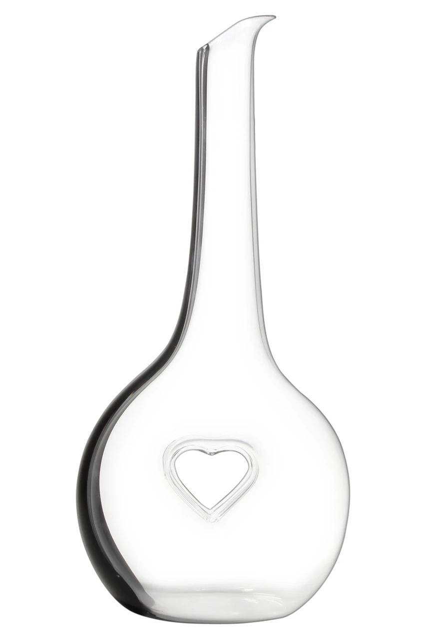 A labor of love, the Bliss decanter displays a round foundation with an off-center heart stamped from each side. This innovative design forces the wine to pool around the element, offering the wine more surface to aerate while providing a comfortable handle.