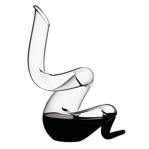 Riedel’s latest powerful “wine tool,” which advances “double-decanting” technology to accelerate the aeration of wine, features a more tightly-coiled body, which brings wines to full flavor profile potential when decanted even more quickly than other Riedel decanters.