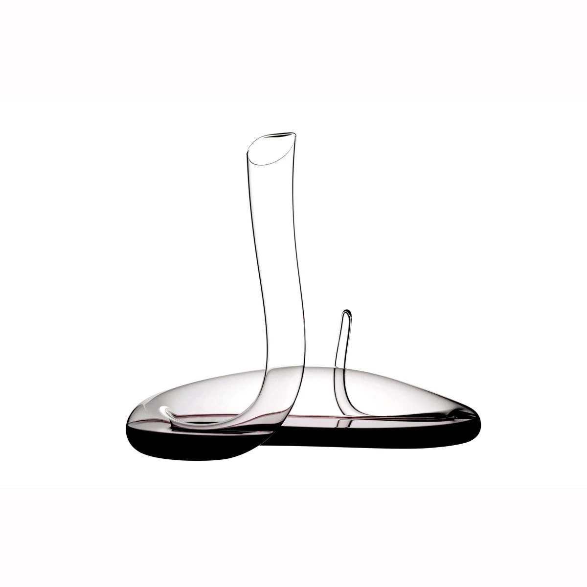 The alluring Mamba, the latest design by Maximilian J. Riedel, is redolent of a sleek mamba snake. As the wine flows through every bend it is double-decanted, “opening up” upon entering the decanter, achieving what would take hours of decanting in a typical bowl-shaped carafe. Following the serpentine Eve decanter (2008), the Mamba channels the vigor of the famous Black Mamba, the world’s fastest snake. Mirroring the snake’s poised upright stance, the Mamba’s coiled base creates a series of air pockets which “charge” the wine as it moves towards the elegant upright neck upon pouring. While the wine makes its journey through the curvaceous glass, the Mamba emits a gurgle – an aural reminder of the decanting accomplished by the force of the wine passing through the vacuum created in the Mamba’s base. – 1950/19 – 1 – C41